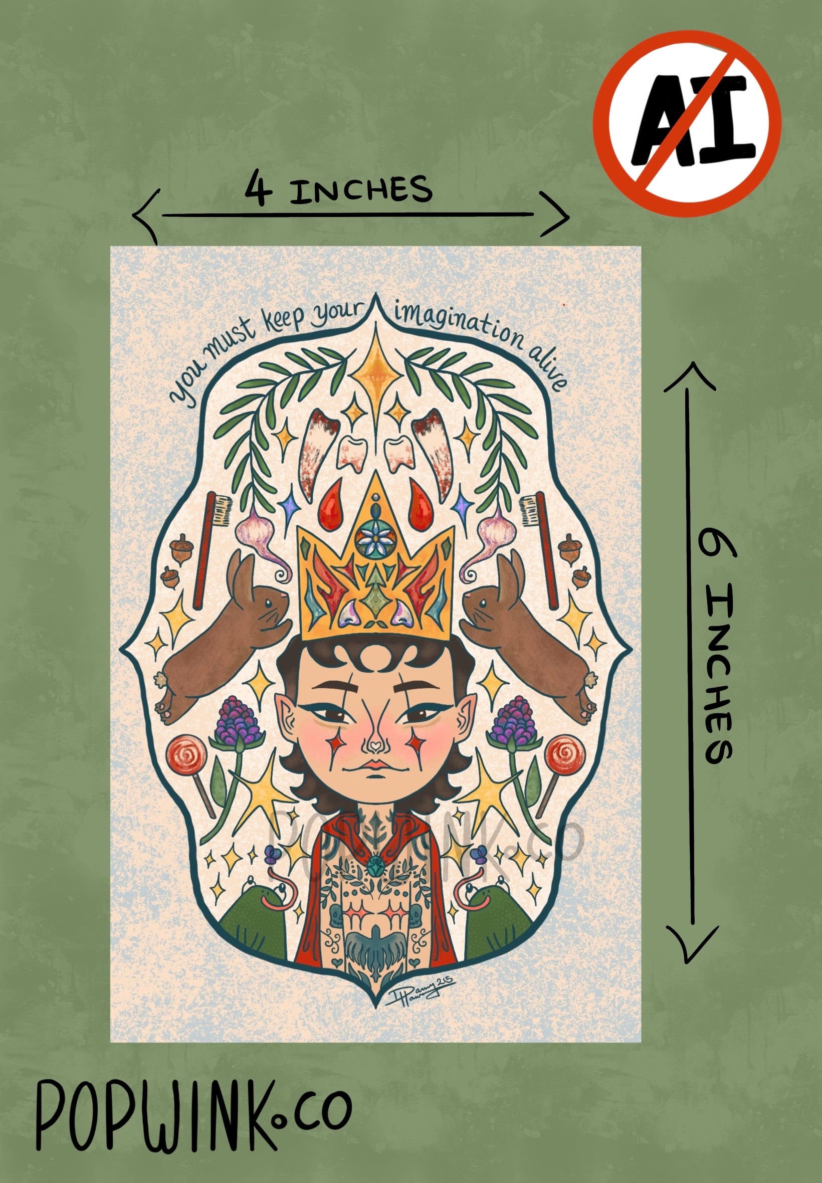 Keep Your Imagination Alive 4x6 Print transmasc, whimsical, rabbit, bunny, frog, cute illustration